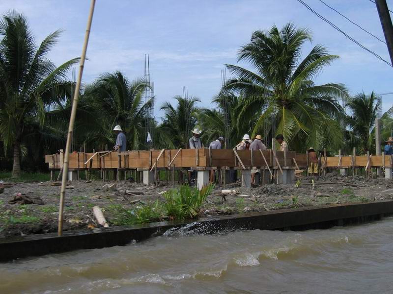 After about 30 minutes of weaving past houses on stilts5, men in rice fields and the odd building site6, we finally saw the first glimpses of the floating market. At first sight it didn’t look anything more than a few houses which opened onto the canalside and the odd old woman paddling around with a canoe of pineapples7 but that was just the start.