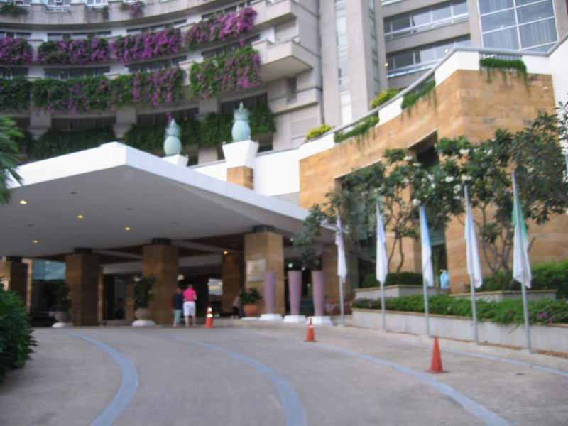 Personally I don’t think the photos on the Hilton site really do it justice, it looks nice but it’s much nicer “in the flesh”. The front of the hotel is enormous with big elephant fountain heads and about 10 big glass doors with plenty of bell boys on hand to carry your baggage. On arriving, they greet you with a fruit juice drink (I think it was melon) and cool towels to freshen up and you’re left waiting for the receptionist on massive soft sofas –a far cry from the fight to talk to the receptionist in the UK!