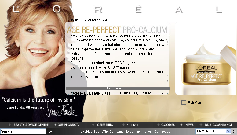 This morning we had the TV on while getting ready to go out and a new L'Oreal advert came on. If you haven't seen it, it has features Jane Fonda telling us how the product helps firm the skin etc, that she's 68 and look how great her skin is -the usual junk. Although the advert doesn't actually say the product is why she "looks so good" it leads you to believe that it is (great marketing btw) anyway, where am I going with this (other than stating the obvious)? Well, when the advert finishedI was left thinking "ok, so this cream makes your skin feeling younger" and "L'Oreal is the answer to all your old age prayers" but surely they're contradicting themselves a touch? Firstly they've got this attractive 68year old promoting this product as well as a 20-something saying "Use this and you won't look old when you're older". Well if Jane's 68 and looks like that (yeah yeah with all that plastic surgery etc) then why invest thousands in the anti-aging creams? -You can just use that one when you're 68. Oh and if she's 68 -don't people think "Hang on, she looks good, she's been around well before L'Oreal started pimping these promises so why should I buy it?" -just a thought! As I keep saying to Stacey, it's been long known that it's all in the genes -any guy that wants to know what his lovely lady is going to look like at 40 all he needs to do is look at her mum...