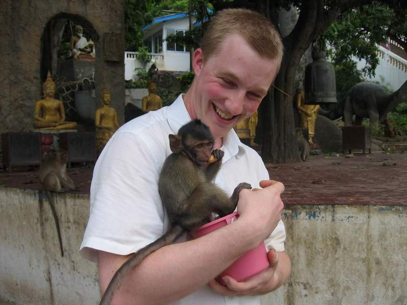 The woman in the food stall also had a baby monkey7 which we think had its mother killed. It was tiny and she let it climb over me, he was a cheeky little fellow too, at one point he climbed into the little bucket of peanuts I had and proceeded to de-shell his feast –much to the annoyance of his peers8!