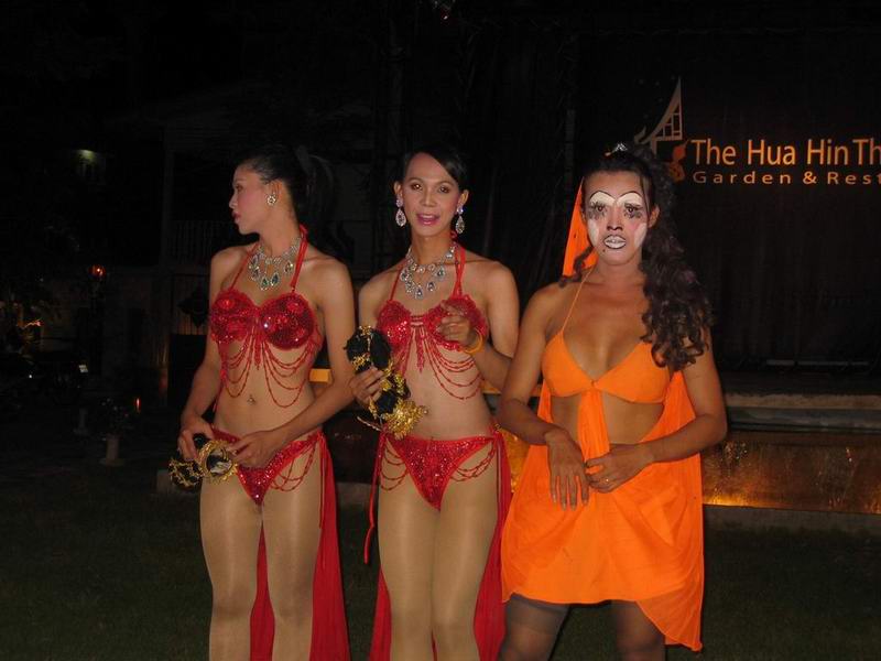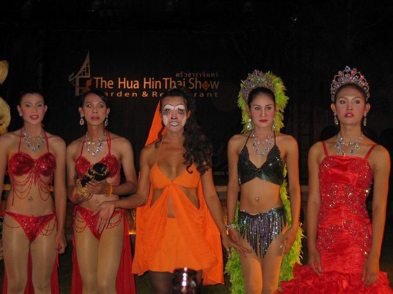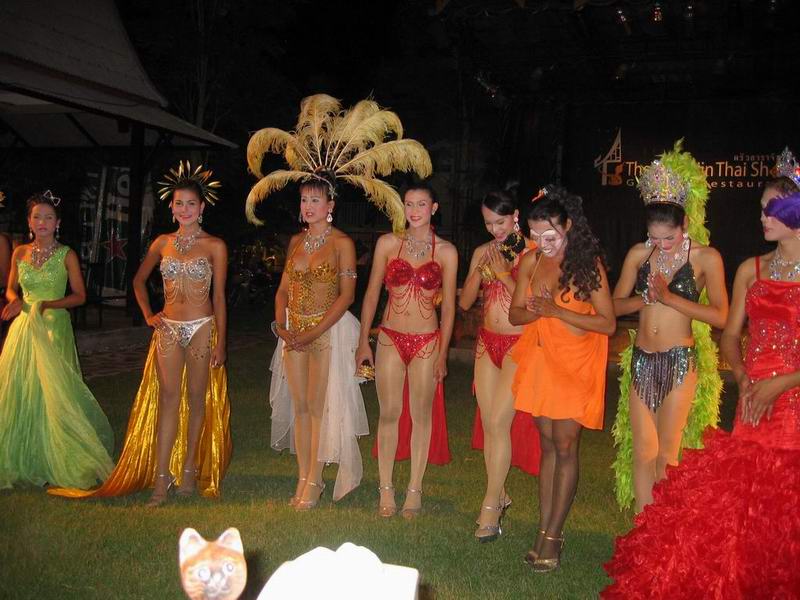 We weren’t quite sure what to expect but there was a stage set back from the eating area where it would all be revealed. After a while the music changed from what sounded like recordings of a Japanese karaoke night to the some Thai classic and out they came. I’m not sure I really agree with the statement that they’re stunning because many of them actually looked like men but the odd one or two had had enough surgery to look lady-esque.
